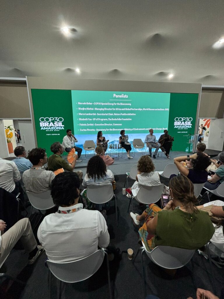Durante o painel “Future of Sociobioeconomy – COP30 Special Envoy for Bioeconomy”, realizado na COP30, a diretora executiva da Conexsus, Fabíola Zerbini, destacou a urgência de incluir formalmente a sociobioeconomia na agenda climática global como um pilar essencial da transição justa.